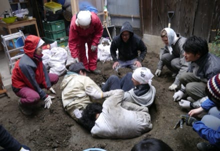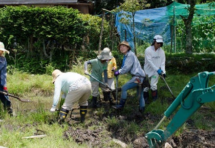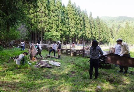 So up to now, the project has organised environmental improvements such as cleaning up illegally dumped rubbish, workshops on renovating old houses, hands-on workshops using the nature of the satoyama, open-air exhibitions and performance events.